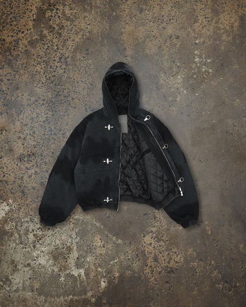 Shige 15oz Washed Black Canvas Clasp Bomber Jacket