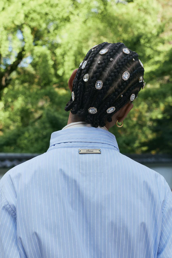 Hattori Asymmetrical Blue Pinstripe Button Up Shirting